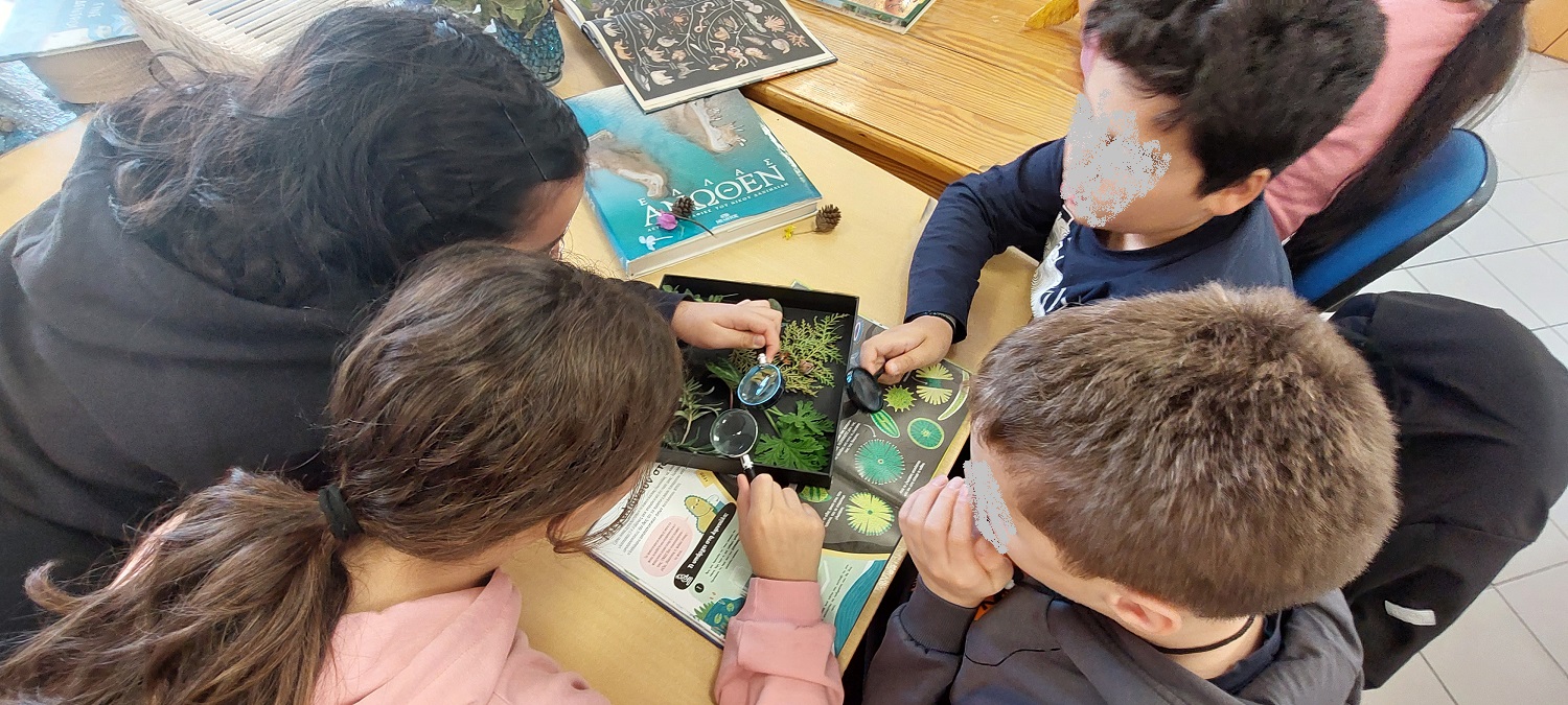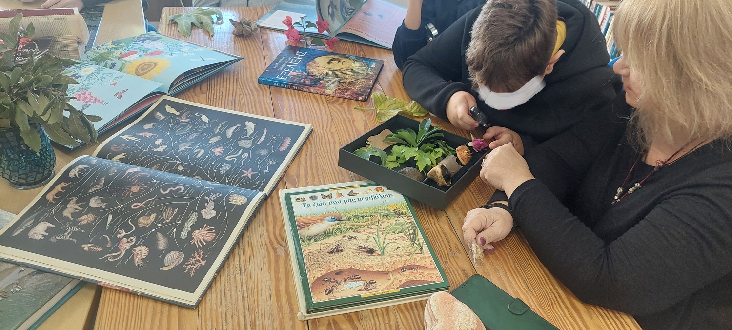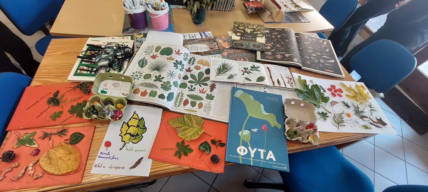 Από τα φύλλα μουριάς που συνέλεξαν από τα δέντρα της Πλατείας, βρέθηκαν στη συλλογή αρωματικών φυτών και σπόρων που βρήκαν στην Βιβλιοθήκη. Ταξίδεψαν στα στρώματα της Γης από την επιφάνεια μέχρι το μάγμα, σε ένα υπέροχο αναδιπλωμένο βιβλίο, ενώ φυτολόγια και περίτεχνα βιβλία για τη φύση βρέθηκαν στα χέρια τους όπου συνέλεξαν εικόνες και πληροφορίες.