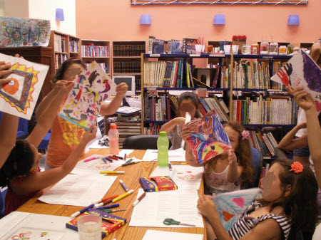 Την Δευτέρα 22 Ιουλίου η ομάδα κατασκευών της βιβλιοθήκης συναντήθηκε για 4η και τελευταία φορά. Πάντα ακολουθώντας οδηγίες απο τα βιβλία της βιβλιοθήκης, βάψαμε βαζάκια με πολύχρωμα χρώματα και σχέδια και φτιάξαμε πολύχρωμες πεταλούδες. Για άλλη μια φορά τα παιδιά ενθουσιάστηκαν πάρα πολύ. Δεν ήταν λίγοι οι μικροί μας φίλοι που φεύγοντας δανείστηκαν για το καλοκαίρι βιβλία με κατασκευές για να μπορέσουν να κάνουν αντίστοιχες δραστηριότητες στο σπίτι τους στον ελεύθερό τους χρόνο.